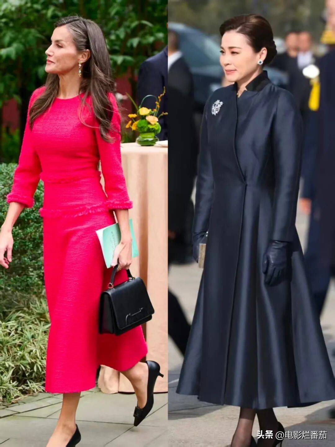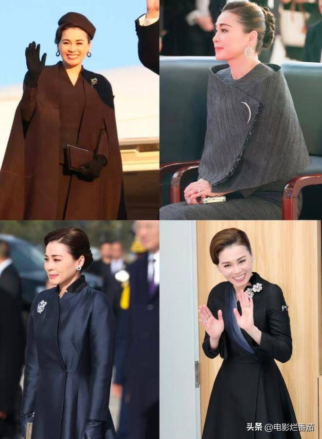 莱后实力诠释“平价也能显贵气”,靠旧衣新穿、利落版型轻松拿捏高级感;苏提达虽然受服丧礼仪约束,却打造出“低调不失华贵”的时尚,尽显东方王室的温婉与肃穆。