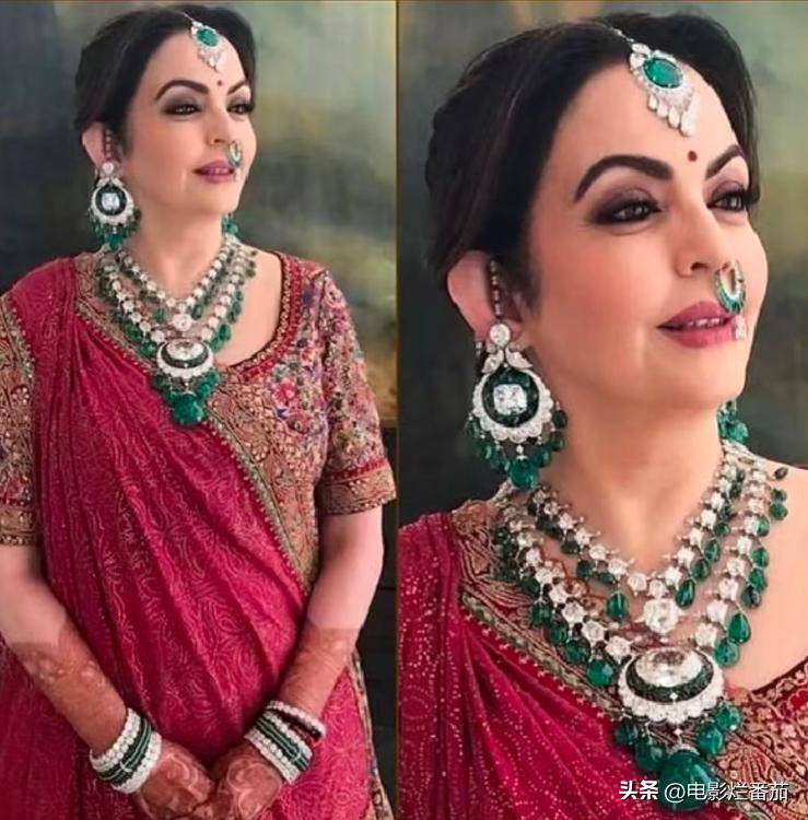 去年小儿子的婚礼上,面对卡戴珊、比尔·盖茨等世界级名流,妮塔能稳站C位不被喧宾夺主,靠的就是这条莫卧儿王朝祖母绿项链。