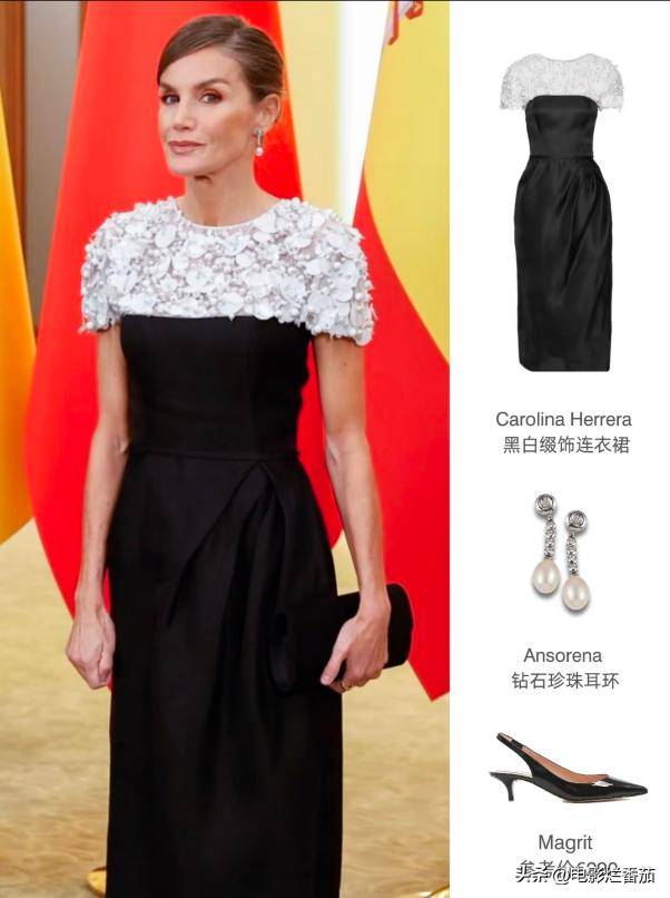 比如:这套很美的拼接连衣裙,其实是莱后三年前的旧衣,当年她曾穿着这套衣服出席阿斯图里亚斯公主奖活动,也是莱后衣橱里价位数一数二的礼服之一。