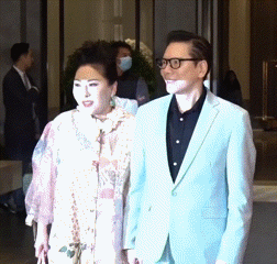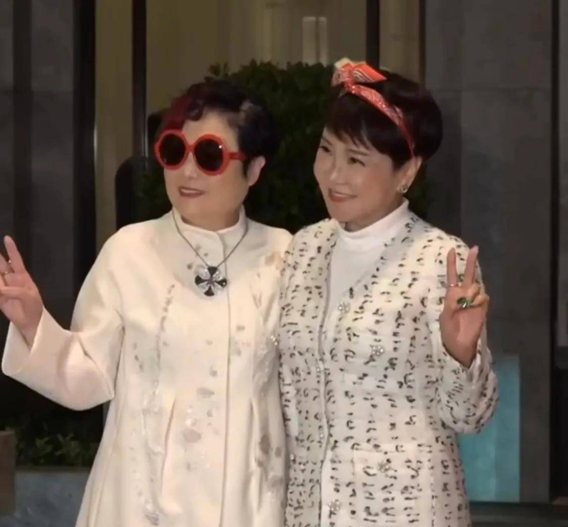 温碧霞换了红发,身穿一件白色香奈儿吊带裙,手腕上戴着个大大的手镯。虽然嫁给了有钱人,但她的穿衣品味似乎没啥变化。温碧霞和杨受成夫妻俩站一块儿合影,她挽着杨太太,表情娇丽迷人,那熟悉的妲己又回来了。