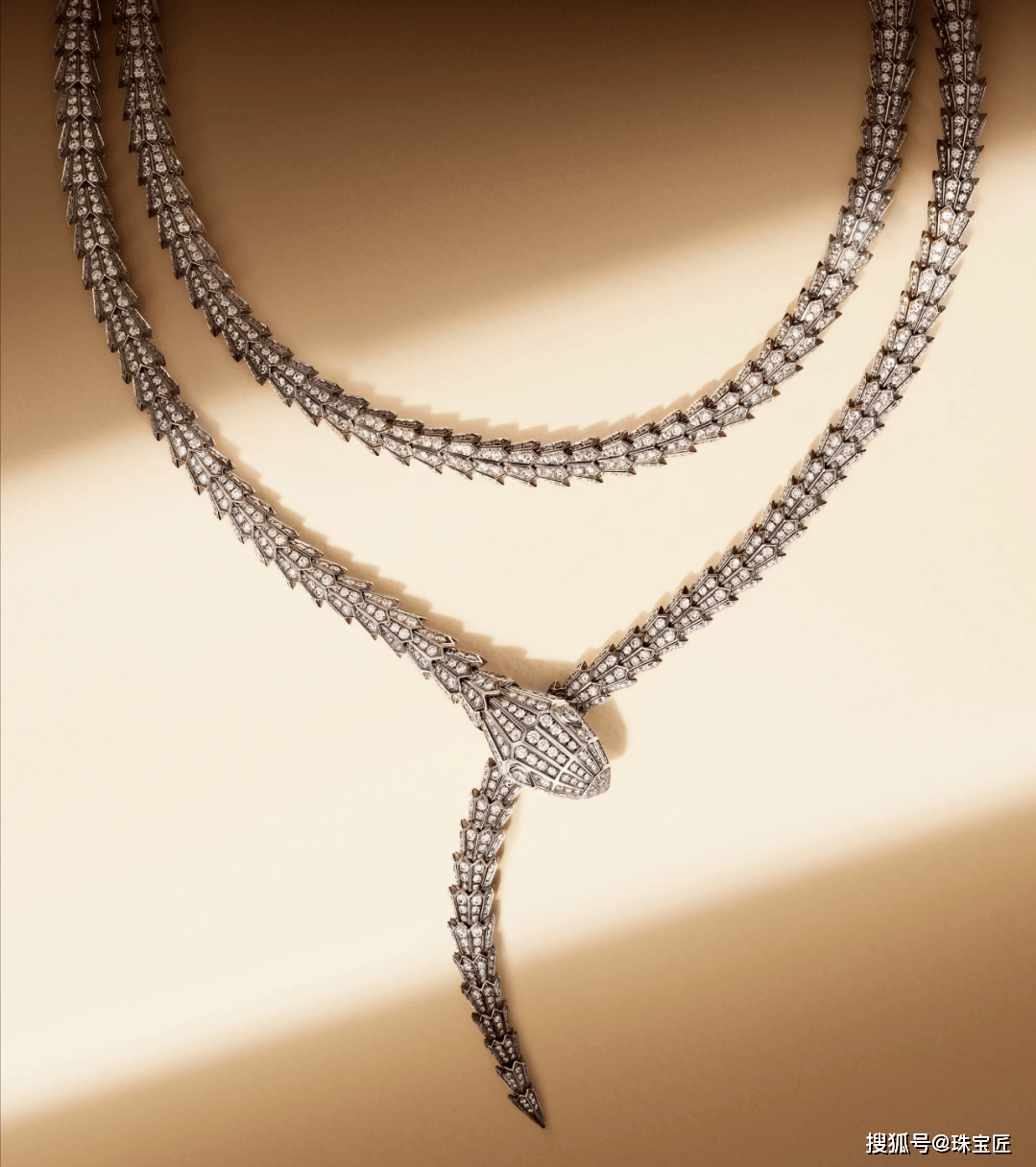 灵蛇首尾相连,两颗0.86克拉的梨形切割钻石点缀蛇眼,蛇身共镶嵌有227克拉的钻石,价值高达940万,佩戴在刘嘉玲的颈前,显得格外的霸气!