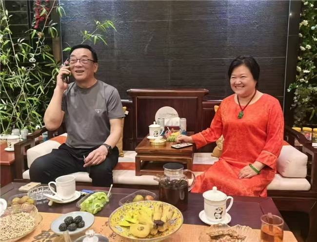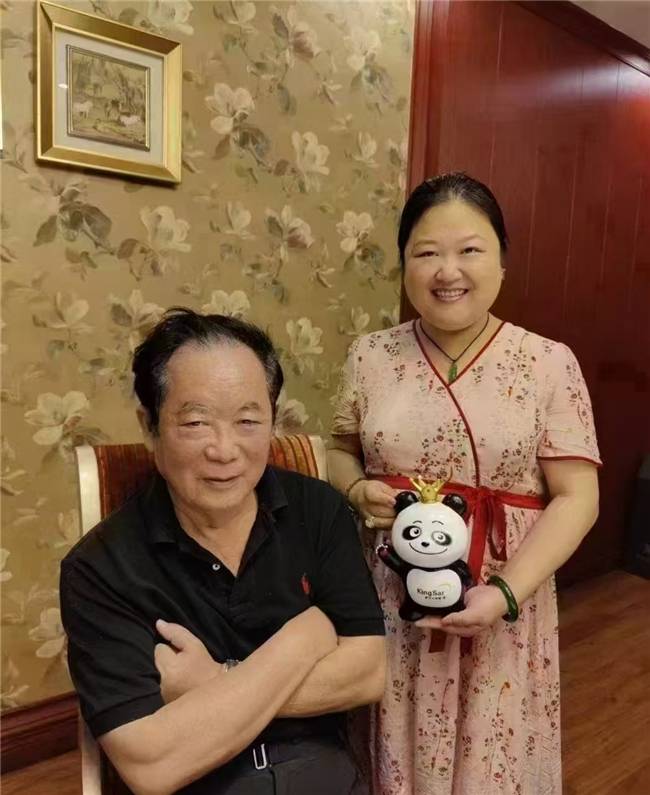 萨王大熊猫文化创始人王敏与全国政协参政议政特聘专家、第十二届全国政协经济委员会石军副主任