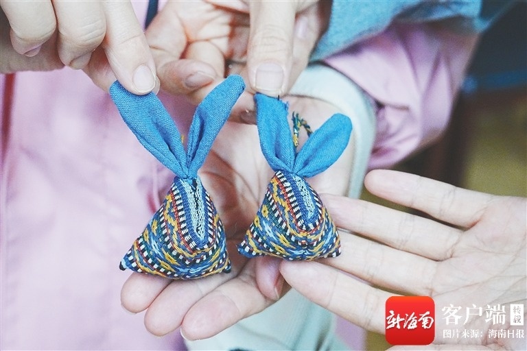 课堂进入尾声时出现了有趣的现象。尽管教学内容相同,但学员们最终完成的黎锦香囊却形态各异,创意十足。“大家很少拘泥于模仿,总会加入自己的巧思,这让每件作品都独一无二,也是让非遗活在当下的最好体现。”王忠文深感愉悦。毫无基础的青年们在专业指导下,参与到从无到有的制作过程,并在其中融入自己的想法与创意,成为了黎锦的“野生传承人”。