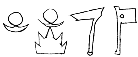 我们汉字也是一样。汉字到甲骨文的时代,有很多是假借字,这个我们稍微学过一点古文字的人都能同意。正因为这样,我们学校已经去世的姚孝遂先生,他就有个意见,在《古文字研究》第四辑上面,说甲骨文当中既然有那么多表音字,甲骨文就是表音文字。因为每个字都有固定读音嘛,所以说汉字是表意文字根本不对。那么甲骨文就已经是表音文字,这样的说法对不对呢?我认为说是表音文字也不对。因为甲骨文当中实际上既有表意字,又有表音字,还有意音字,它是三种字混合都有的。这种三种字共存的制度,埃及文字、楔形文字,还有玛雅文字,实际上都用这些办法。所以周有光先生在《比较文字学初探》里面说,六书有普遍适应性,这句话我认为是很对的。在意音文字体系里面,它这六种方法都要用。当然像转注呢,各人有不同的看法。我的看法是这样的,就像刚才那个东巴文的例子里边,画把斧子,可以不念斧,而念铁。为什么呢?因为斧子是拿铁做的。画一把斧子既可以念铁又可以念斧,这就是转注,这种在埃及文字里面、在楔形文字里面都有,所以它实际上还是一种表意法。