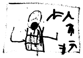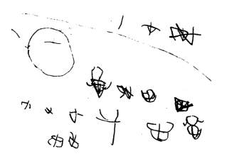我要证明我的观点。曾经让我的孙子给我写几个字看,他那时候是学龄前的,没有学过字,就画出来这么一堆符号: