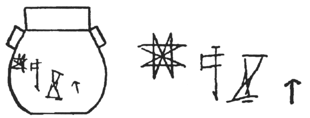 新石器时代确实有很多陶文,这些陶器上的符号有的是刻的,有的实际上也是拿毛笔写的。过去有不少文字学家,包括像我的老师于省吾先生,认为这些字就是中国文字的起源,比如于省吾先生就举出半坡文化陶器上的一些符号认为跟甲骨文可以对上。过去不少学者认为文字的发生是符号的积累,符号积累多了自然就形成文字了。就是说有这么多符号了,其中我找出一些跟后代文字相似,那么就是文字起源。好像郭沫若也是这样看的。有的符号很像图形符号,如: