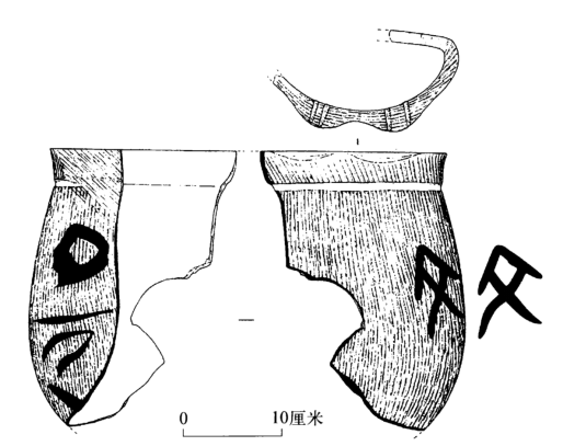我们假如认为殷墟已经有文字的话,那么夏代的文字也是有了很重要的线索。现在知道陶寺遗址出了一个陶瓶,陶瓶上面有朱书的文字。一个是“文”字,非常清楚,跟甲骨文的“文”字写法是有相近之处的,就是文武的“文”。还有个字有的人说是尧字,有的人说是昜(阳)字,反正也不是很清楚。