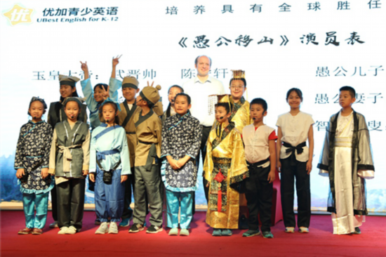 斯明诚创作的英文戏剧《愚公移山》在北京优加青少英语学校首演。(资料图片)