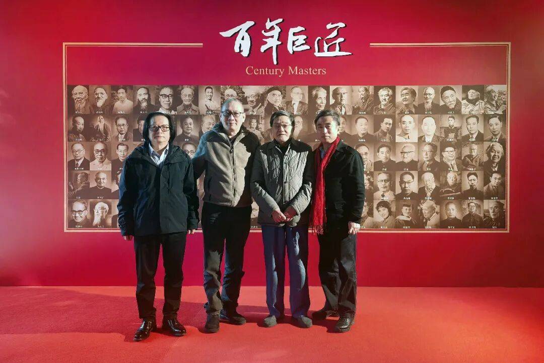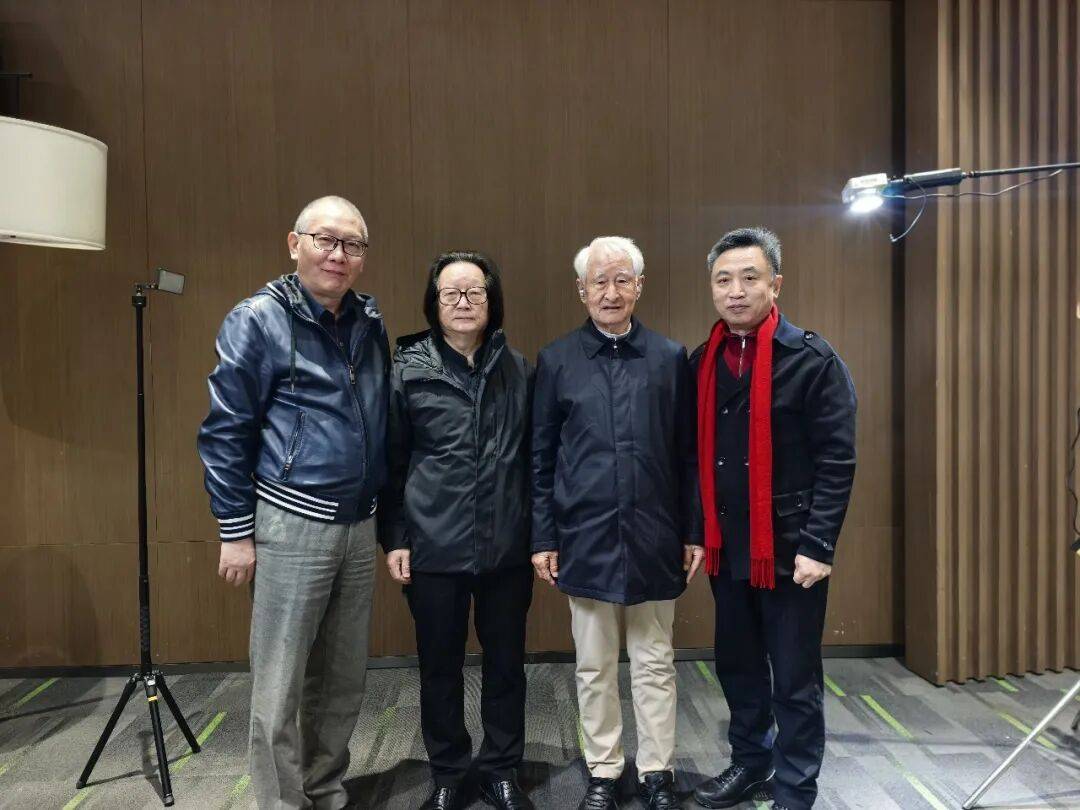 左起:《百年巨匠-秦含章》总导演夏蒙、秦含章之子秦大文、国家级非遗代表性传承人高景炎、《百年巨匠》出品人、总策划杨京岛